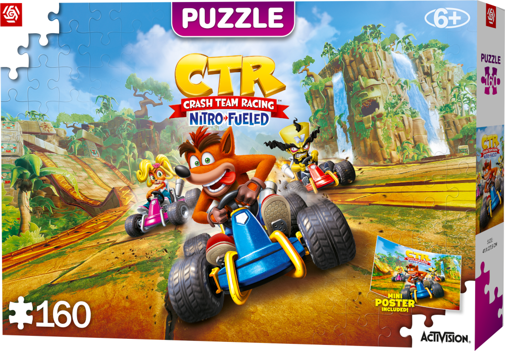 Este juego se basa en el famoso videojuego infantil Crash Team Racing: Nitro-Fueled, un loco juego de carreras. Únete a Crash y sus amigos mientras completan este dinámico patrón de rompecabezas.
