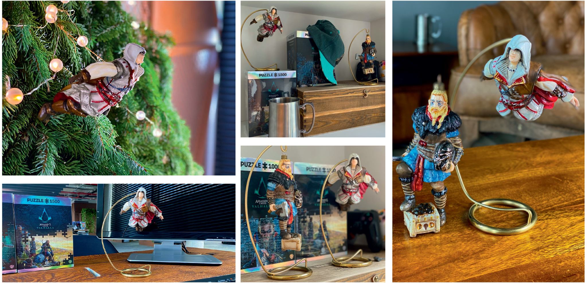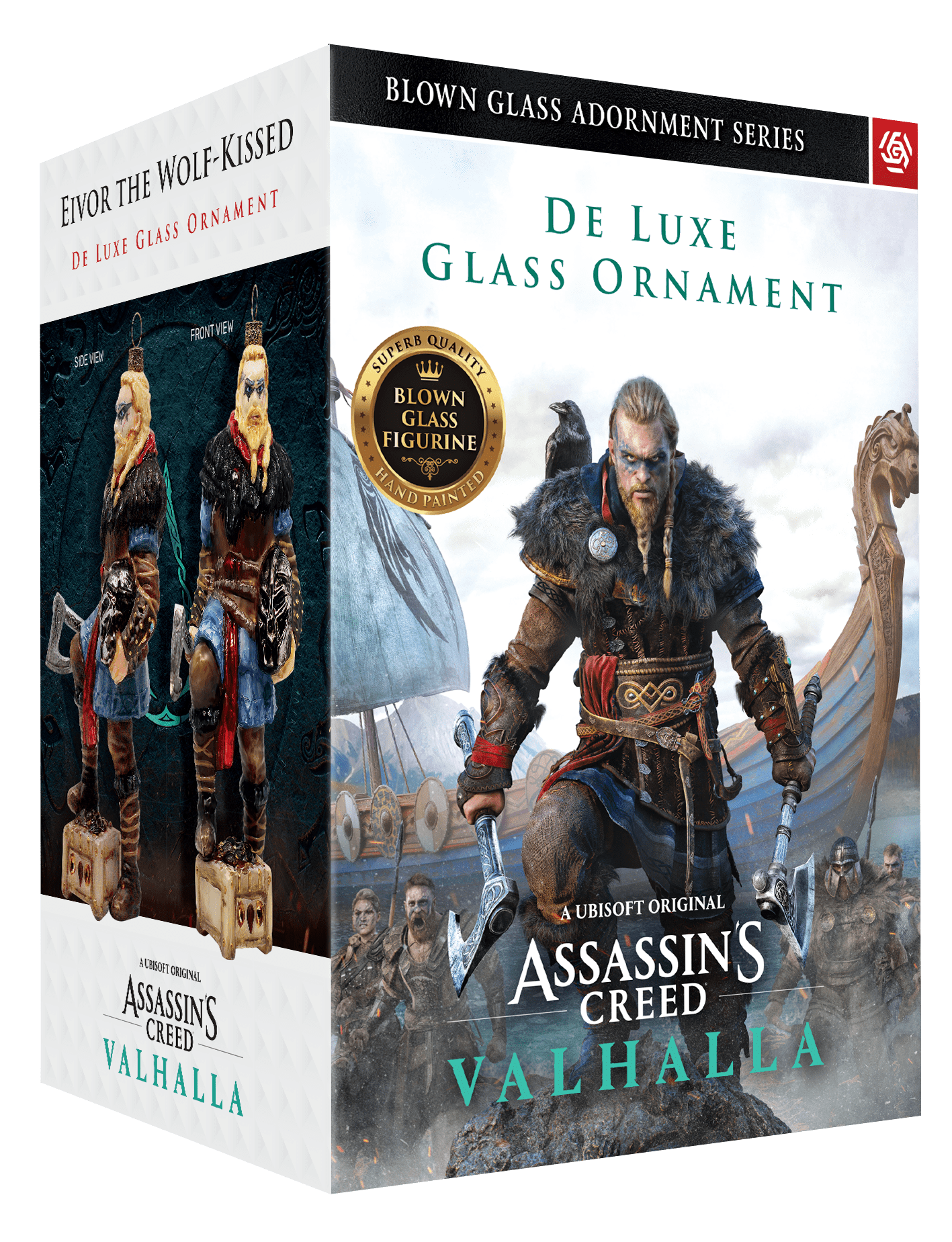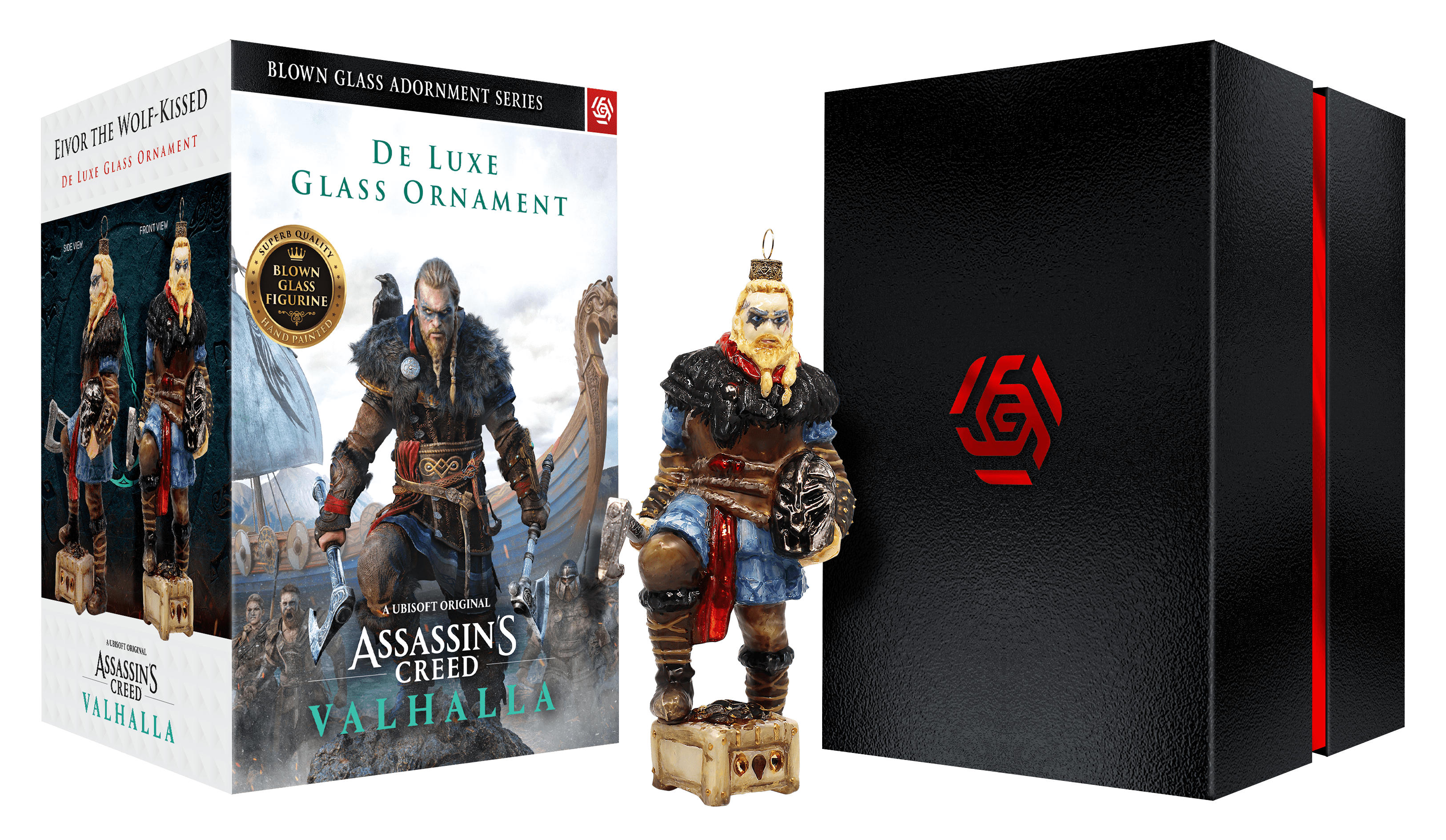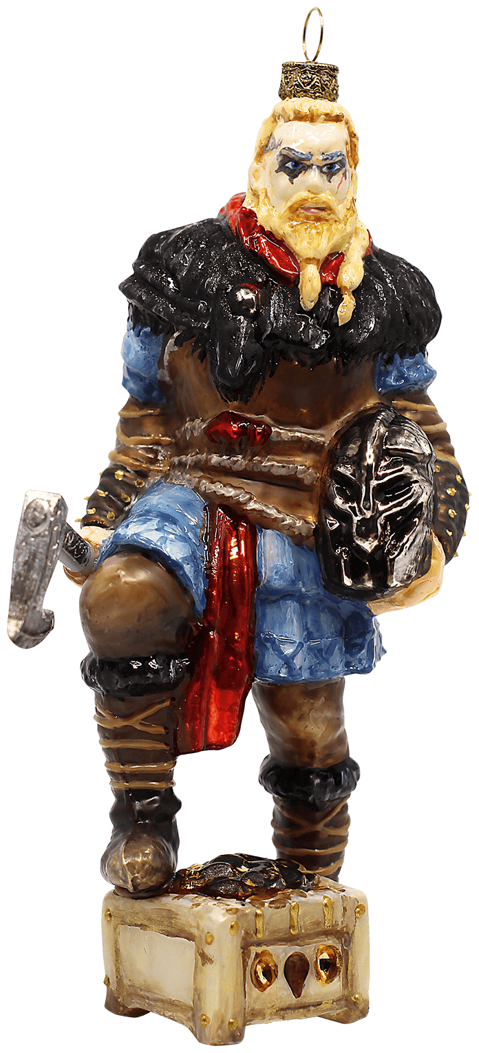 Niezwykle szczegółowa, ręcznie malowana dekoracja ze szkła, inspirowana postacią Eivora z gry Assassin’s Creed Valhalla. Ta szesnastocentymetrowa figurka przedstawia przywódcę klanu wikingów w pozie przepełnionej pewnością siebie i dumą.